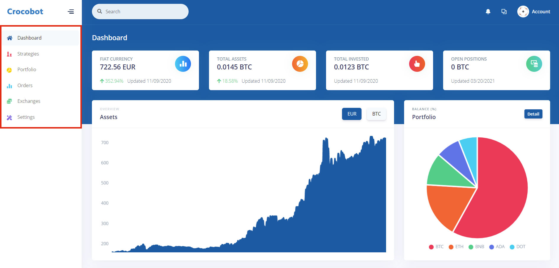 Trading Bot Menu: On the left side, click to configure your trading bot